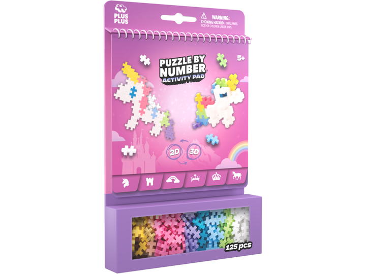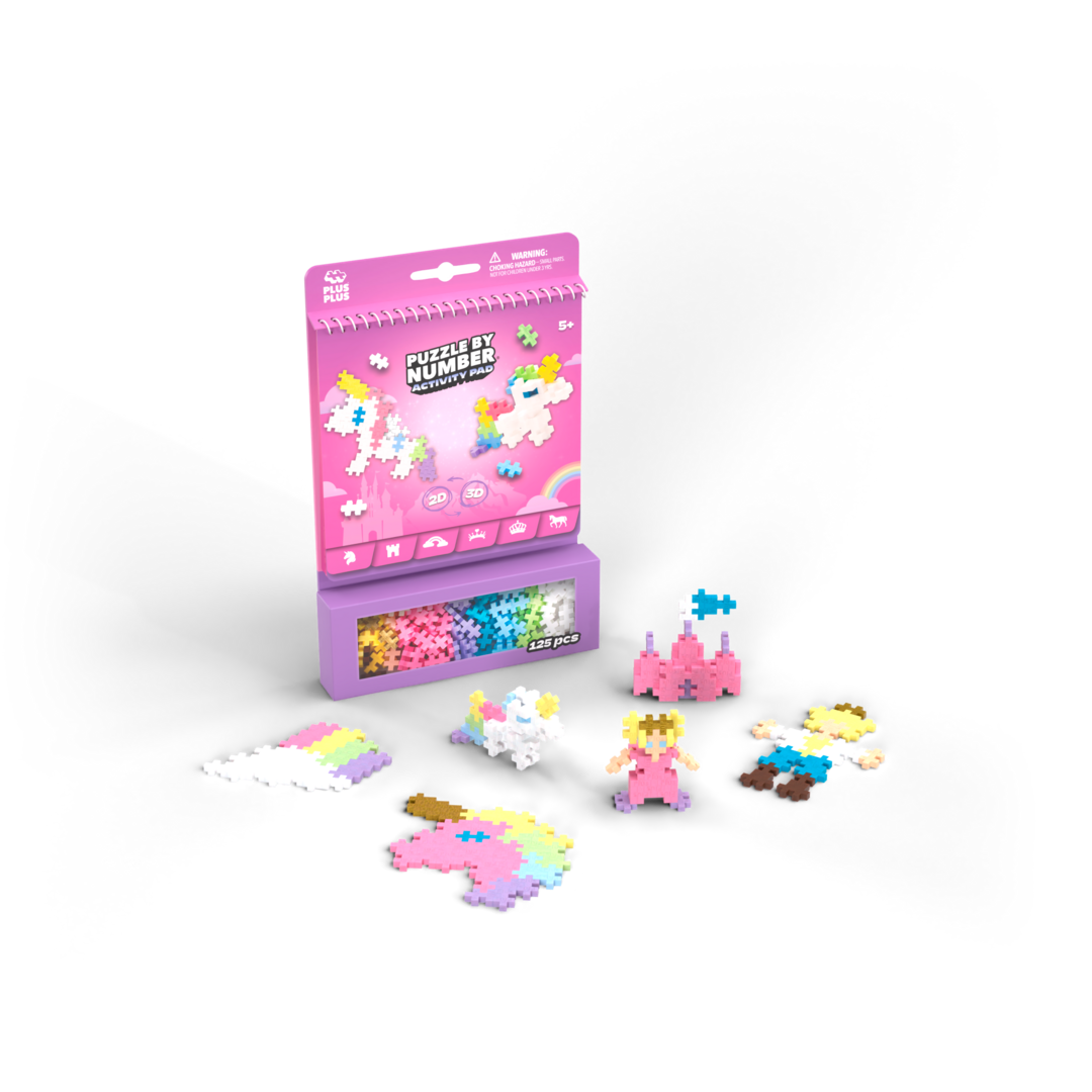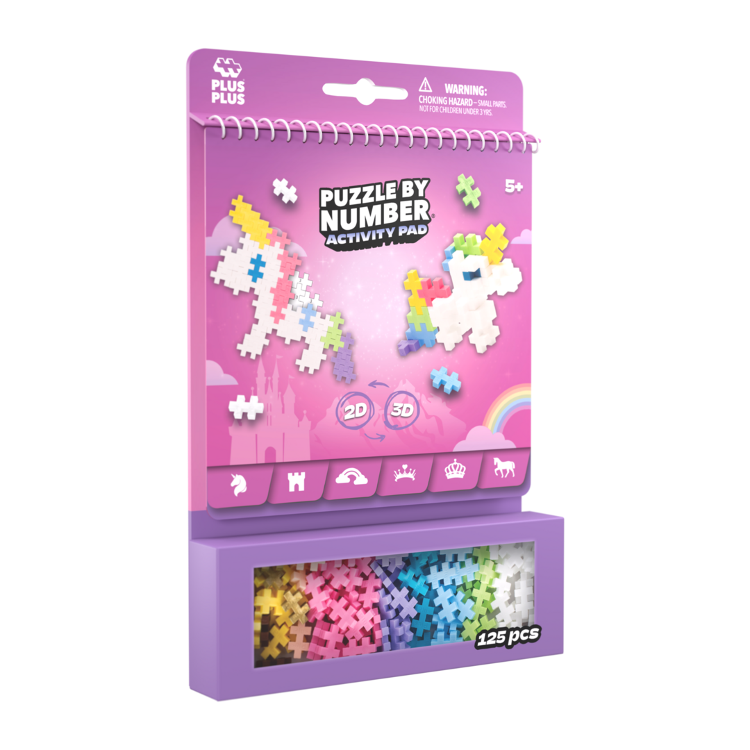 The Puzzle by Number Activity Pad is a fantastic all-in-one concept that offers 12 activities. Each spread provides the opportunity to create the same object in both 2D and 3D. The Puzzle by Number Activity Pad is portable and perfect for travel, as well as for fun activities at home. This set includes 12 activities with a fairytale theme. Build unicorns, princesses, princes, rainbows, and more. Comes with 125 pieces.