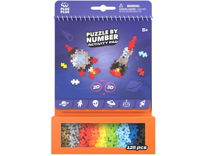 The Puzzle by Number Activity Pad is a fantastic all-in-one concept that offers 12 activities. Each spread provides the opportunity to create the same object in both 2D and 3D. The Puzzle by Number Activity Pad is portable and perfect for travel, as well as for fun activities at home. This set includes 12 activities with a space theme. Build rockets, aliens, stars, and more. Comes with 125 pieces.