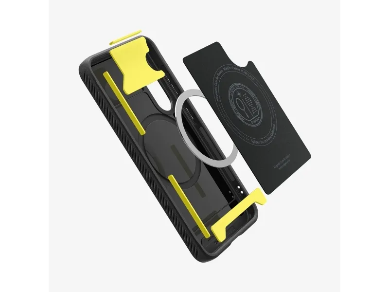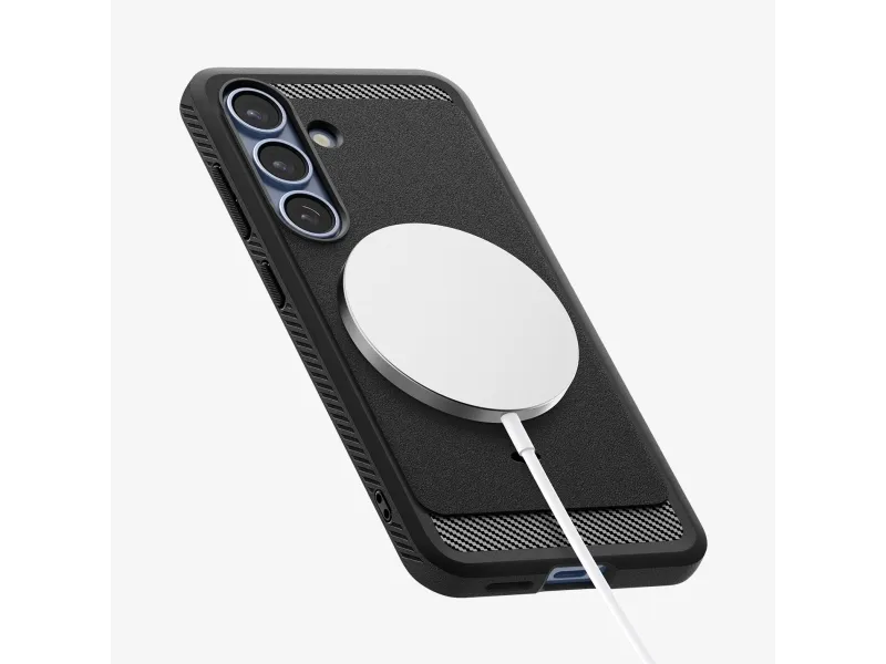 The Spigen Rugged Armor Magfit is a protective cover for cell phones, combining style and robust protection. Made with a blend of polycarbonate, thermoplastic polyurethane (TPU), and impact foam, it ensures durability and longevity. Its air cushion technology and Extreme Protection Technology provide defense against drops and impacts. This back cover features raised edges for screen and camera protection, safeguarding your device from everyday hazards. Designed for seamless use, the case supports wireless charging, allowing users to power their devices without removing the case. With corner protection included, the Spigen Rugged Armor Magfit is perfect for those seeking reliable protection and functionality.