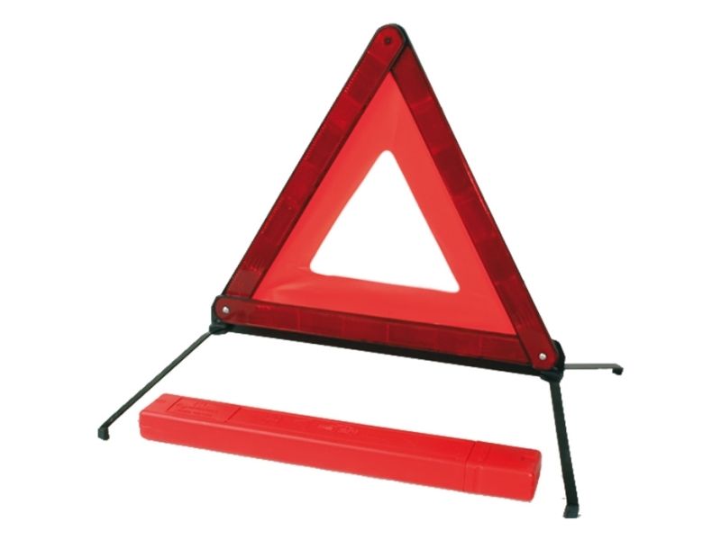 Sammenklappelig advarselstrekant til brug ved motorstop. Lovpligtig i de fleste EU-lande. E-godkendt. Leveres i ultra kompakt opbevaringsæske.