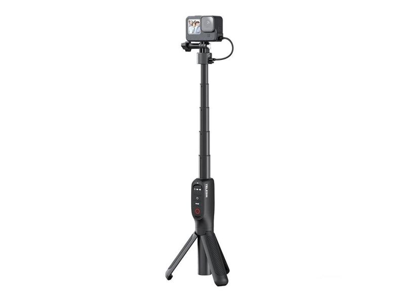 Designed specifically for GoPro Hero 13/12/11/10/9/MAX cameras, the tripod is an innovative accessory that combines the functions of a selfie stick and tripod in one. With the built-in remote control, you can conveniently record videos and take photos. The 5,000 mAh battery provides up to 6 hours of use when recording in 4K@30fps quality, giving you the freedom to use the camera without worrying about drainage.