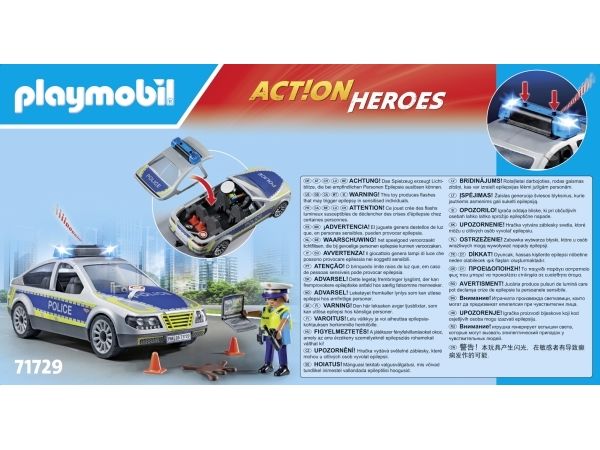 Træd ind i action med PLAYMOBIL politipatruljebilen! Blinkende lys, realistiske sirener og plads til vigtigt udstyr gør den perfekt til hæsblæsende biljagter og sikring af området. Med aftageligt tag, anhængertræk og detaljeret tilbehør som refleksvest, trafik­kegler og politinotesbog føles hver mission ægte.