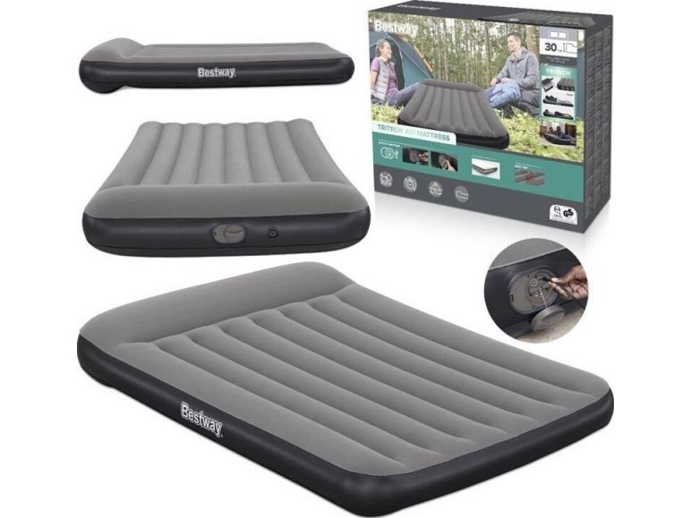 Bestway 2-personers Tritech oppblåsbar madrass Innebygd USB-pumpe 191x137cm 671BR