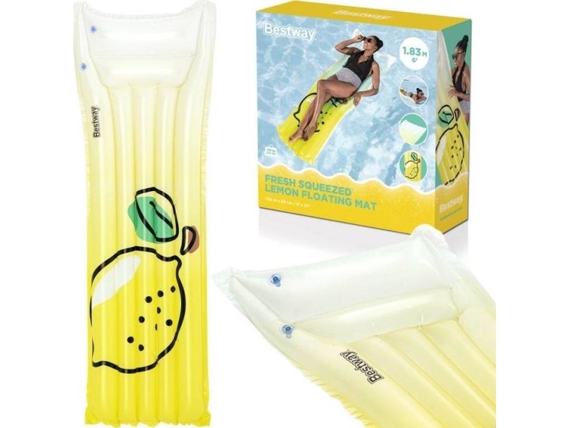 Product type- Inflatable mattresses. Brand- Bestway. Article- 44122. Length- 183 cm. Width- 69 cm. Colour- Yellow. Material- Vinyl.