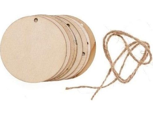Vedskiver med hull + jutesnor 8stk