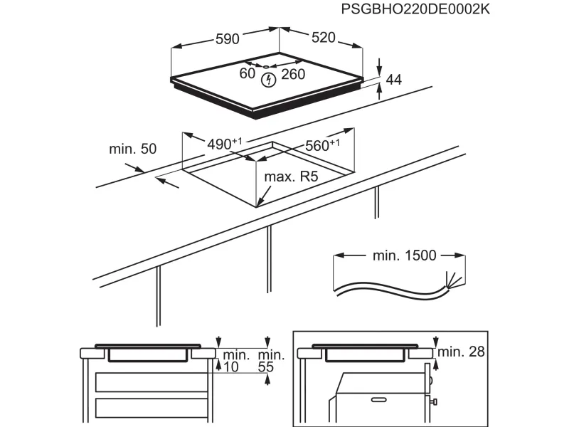 Electrolux Serie 600 EIV64453. Product colour: Black, Appliance placement: Built-in, Hob width size: 60 cm. Certification: CE|DEMKO|WABE|UL|STAR. Control type: Touch, Control position: Front, Timer type: Digital. Connected load (electric): 7350 W, AC input voltage: 220-240/400 2N, AC input frequency: 50 Hz. Width: 590 mm, Depth: 520 mm, Weight: 12.1 kg