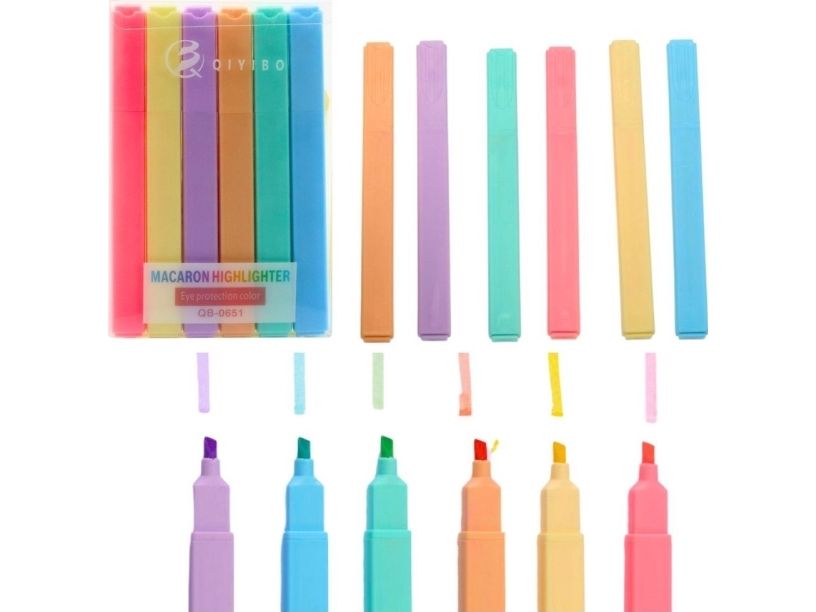 Sett med highlightere, tusjer, fargede tusjer, kontor, skole, 6 stk EDUKAMP