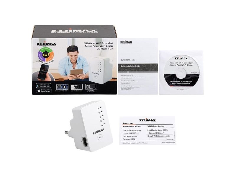 The Edimax EW-7438RPn Mini Wi-Fi Extender is a Wi-Fi extender with built-in power adapter in a compact design which can be plugged directly into an electrical outlet. Convenient placement allows you to increase the signal coverage of your Wi-Fi network for better Wi-Fi quality. Featuring smart iQ Setup, installation is quick and easy and the EW-7438RPn Mini features 3-in-i Wi-Fi extender, access point or wireless bridge operating modes. Just configure the mode you need for your network environment. Additionally, it complies with wireless 802.11 b/g/n standards and provides data transmission rates of up to 300Mbps. With the Edimax EW-7438RPn Mini, you can enjoy high-speed wireless networking throughout your home without additional cabling.