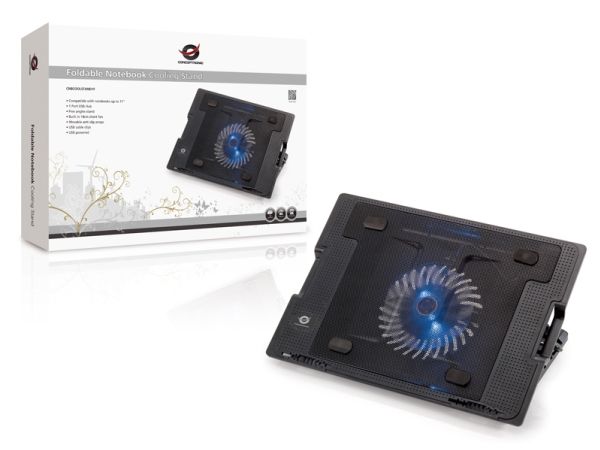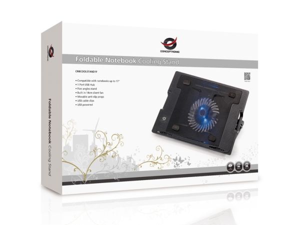 The Conceptronic CNBCOOLSTAND1F notebook stand is a versatile solution for enhancing your workspace. Equipped with a built-in cooling fan, it helps prevent overheating during long working hours. The stand features an adjustable angle with five positions, allowing for ergonomic use and improved comfort. It is USB-powered, making it convenient to operate without the need for an additional power source.