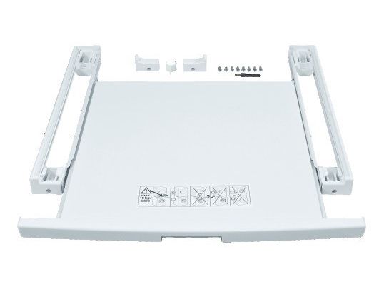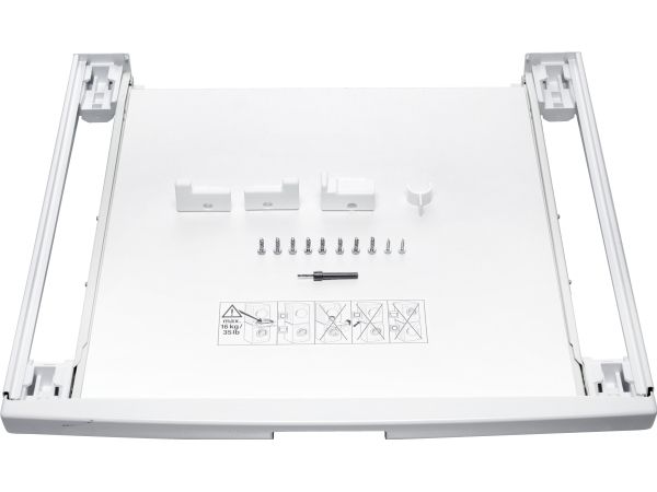 The Bosch WTZ11400 stacking kit is designed for optimal organization in laundry rooms. This accessory allows for efficient space management by securely stacking a dryer on top of a washing machine. Enhanced with an integrated storage drawer, the stacking kit offers a practical solution for storing laundry essentials, keeping your space tidy and accessible. This product is suitable for those looking to maximize limited space while maintaining functionality in their laundry activities.