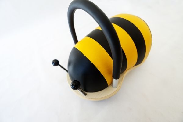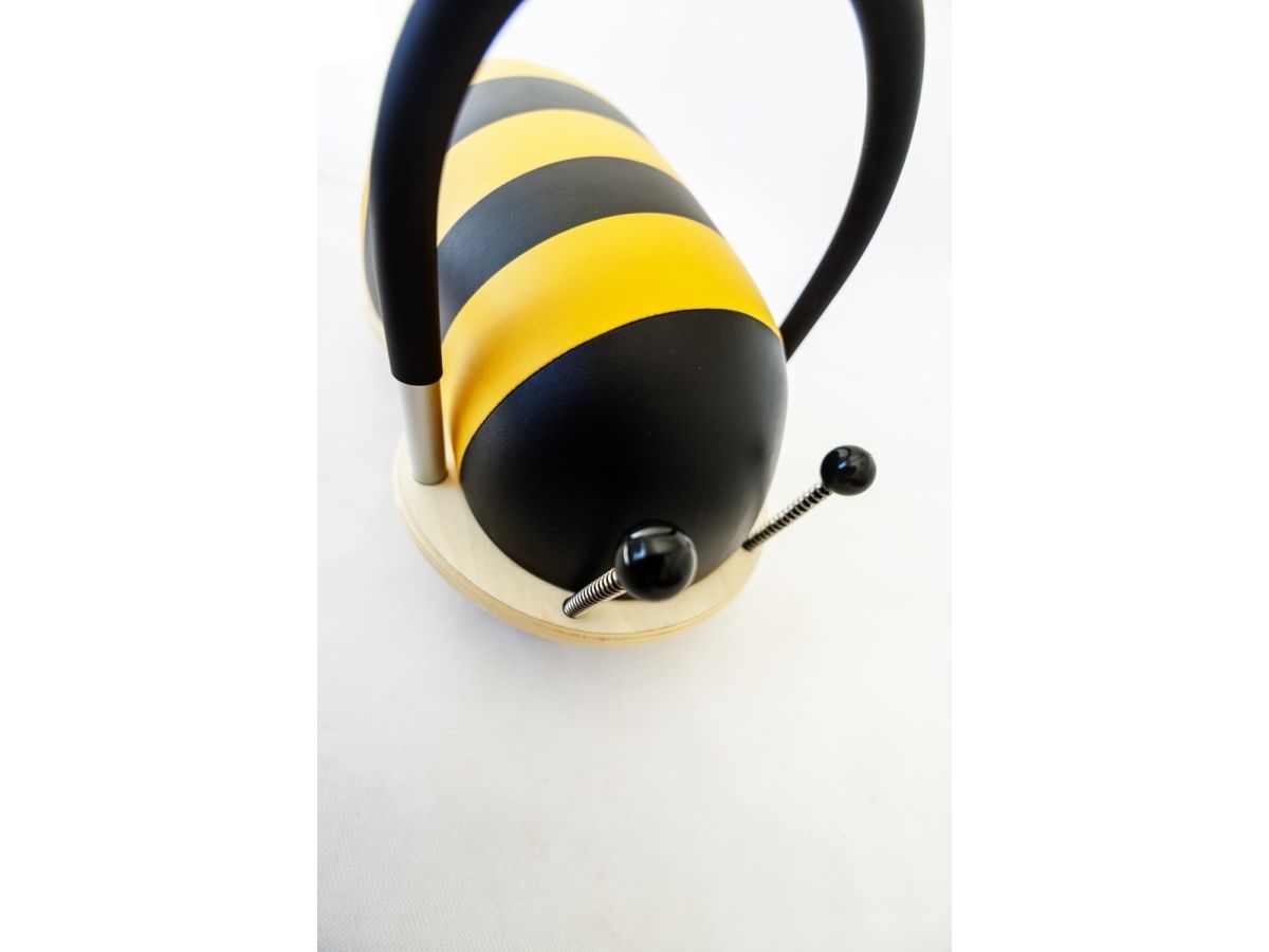 Den lille model, af den prisvindende originale håndlavede Wheely Bug Bi, er en fantastisk skubber/gåbil. Det unikke ved Wheely Bug fremfor lignende legetøj er, at hjulene kan dreje rundt i 360 grader, så der altid kan være fuld fart på legen med den lille bi. Dette udfordrer blandt andet barnets grovmotorik, afstandsbedømmelse og koordination. Wheely Bug'en er ergonomisk rundet, så den er behagelig for barnet at sidde på. Desuden har Wheely Bug et lavt tyngdepunkt, hvilket gør det svært for barnet at vælte med den. Udført i lærketræ med håndtag i rustfrit aluminium, nylonhjul og miljøvenligt Polyuretan. Mål: L: 36 x B: 23 cm. Siddehøjden er 20 cm. Anbefalet max vægt: 25 kg. Beregnet til børn fra 1 til ca. 1½ år.
