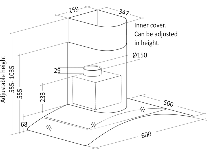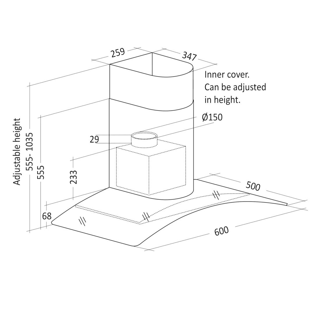 Scandomestic EMV 602 - Vegghengt hette - bredde: 60 cm - dybde: 50 cm - avsug & resirkulering - med intern motor - stål