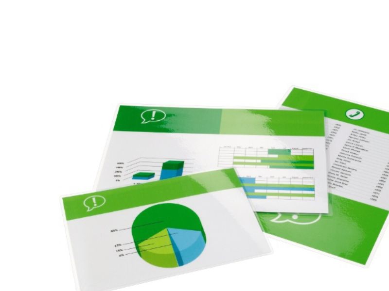 Protect heavily handled daily reference documents/pages with a tough glass-clear laminate that adheres to both sizes of printed matter. High Gloss Finish 75,150, 160, 200, 250, 350, 360 and 500 Micron Weight options (total thicknesses) 25, 50 ,100 or 200 pack options Usable with all Standard A4 pouch Laminators that have a Lamination width of at least 230mm Super-Flat, Wrinkle and Warp free. Carrier-free operation.