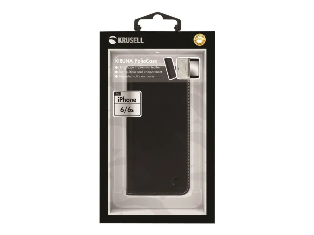 Krusell Kiruna FlipCase - Lommebok for mobiltelefon - ekte skinn - svart