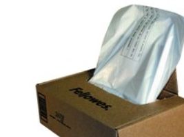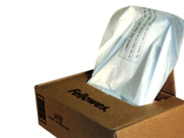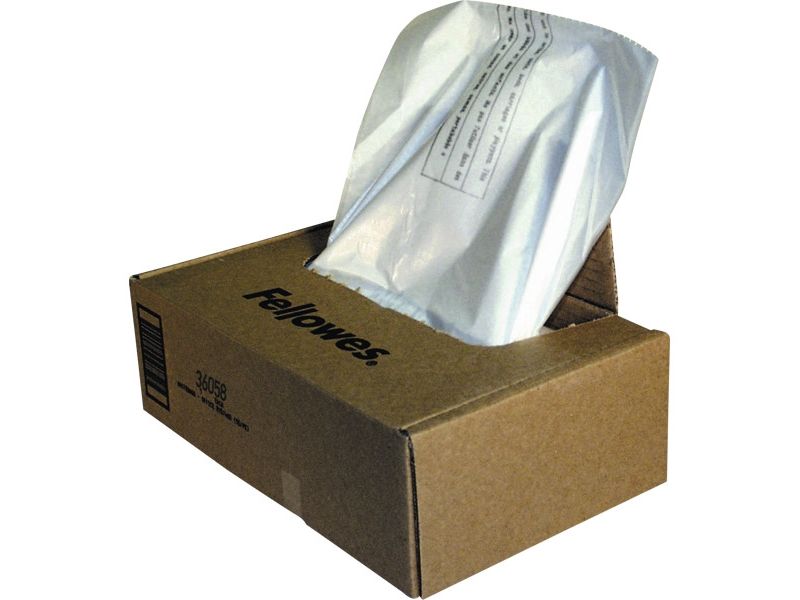 Powershred Waste Bags for Fellowes shredder waste receptacles. Convenient bags keep work areas clean, and include easy-to-use dispenser box with extra-long wire ties.