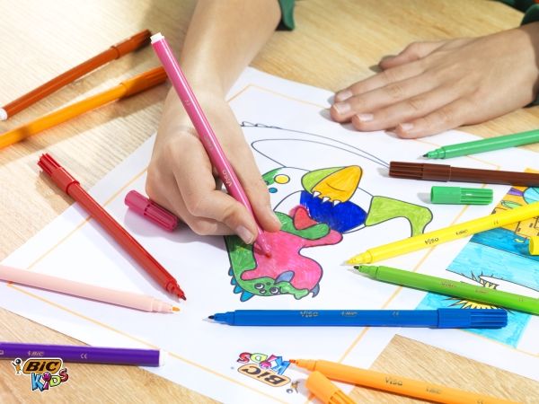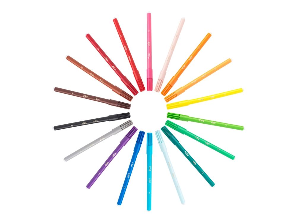 BIC Kids Visa fargetusjer med fin spiss, 0,9 mm, vannbasert blekk, ikke-permanent – med 18 assorterte farger