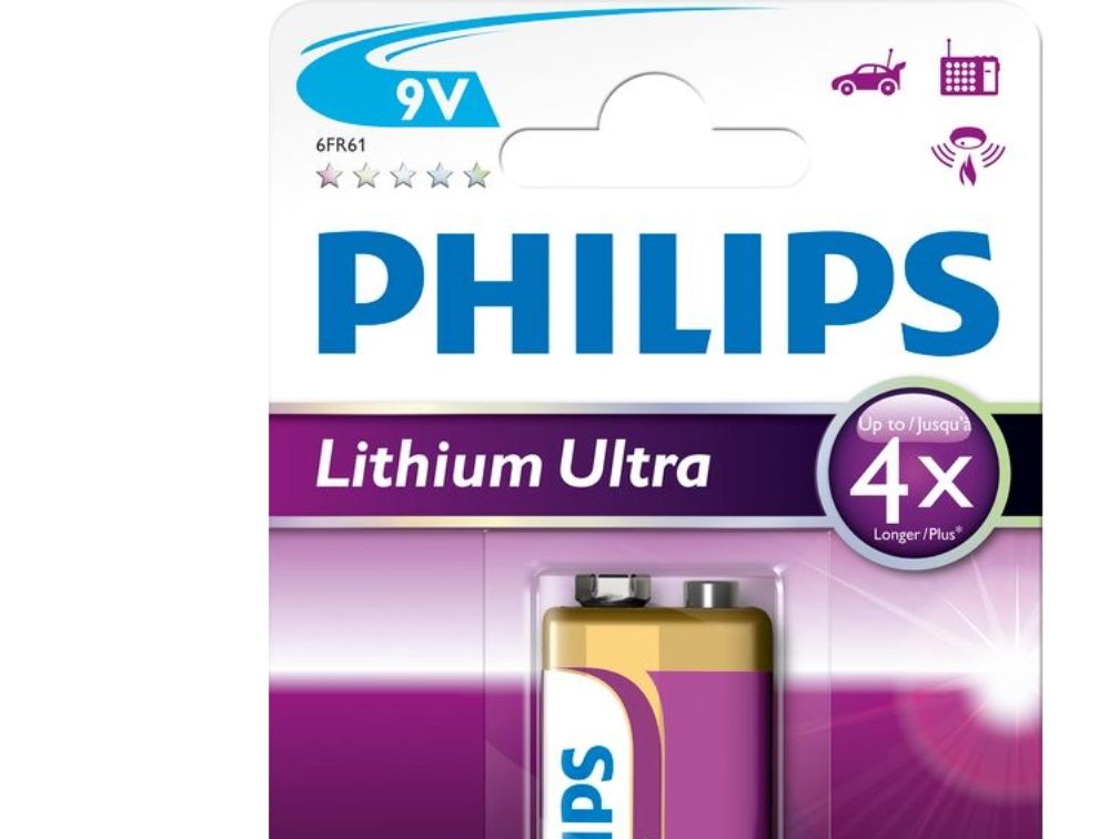 Philips Lithium Ultra Batteri 6FR61LB1A/10, Engangsbatteri, 9V, Lithium, 9 V, 1 stykker, Cd (kadmium), Hg (kvikksølv), Pb (bly)