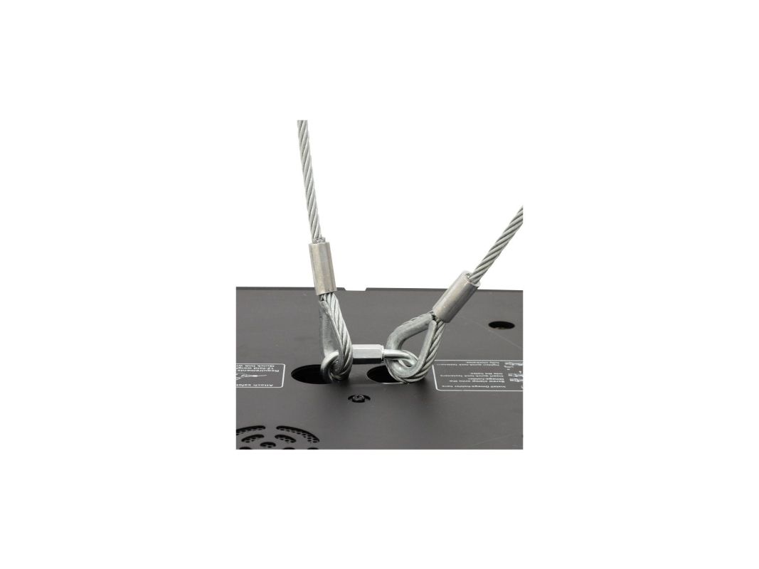 The EUROLITE safety bonds comply with the current regulation of the German professional insurance association as summed up in BGI 810-3:2007-03 Loads above persons. The safety bonds are constructed in accordance with the European standards DIN EN 12385-4:2008-06 and DIN 56927:2009-03.