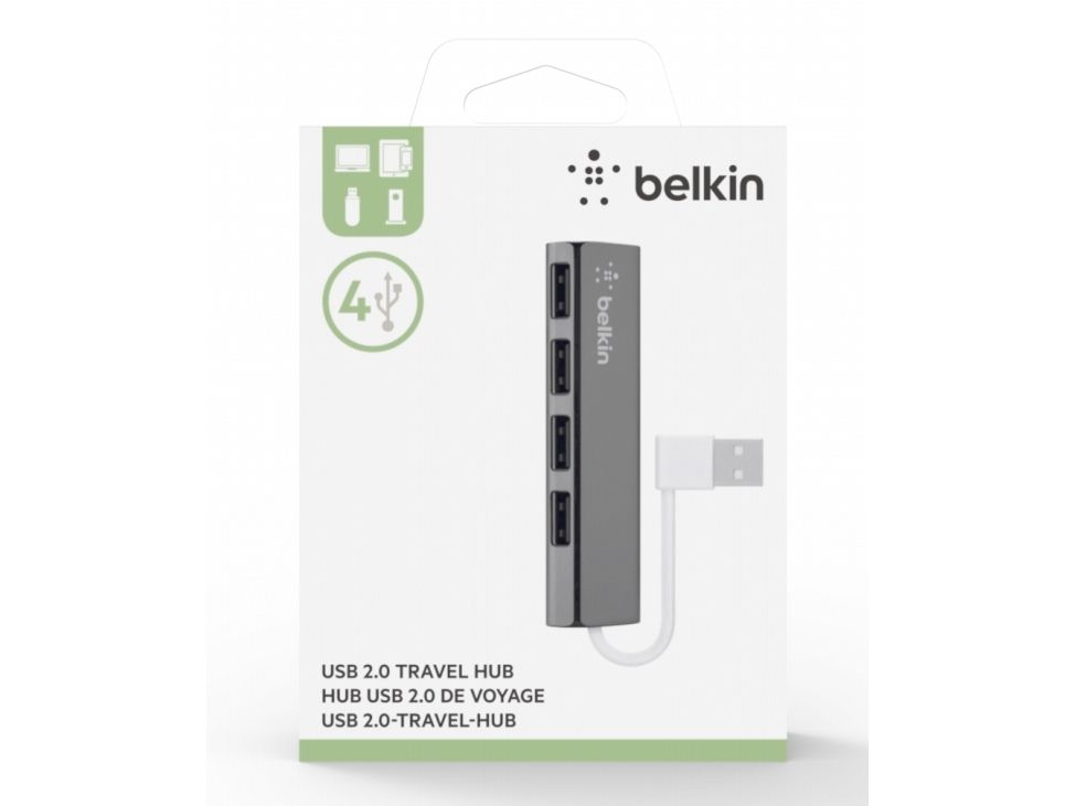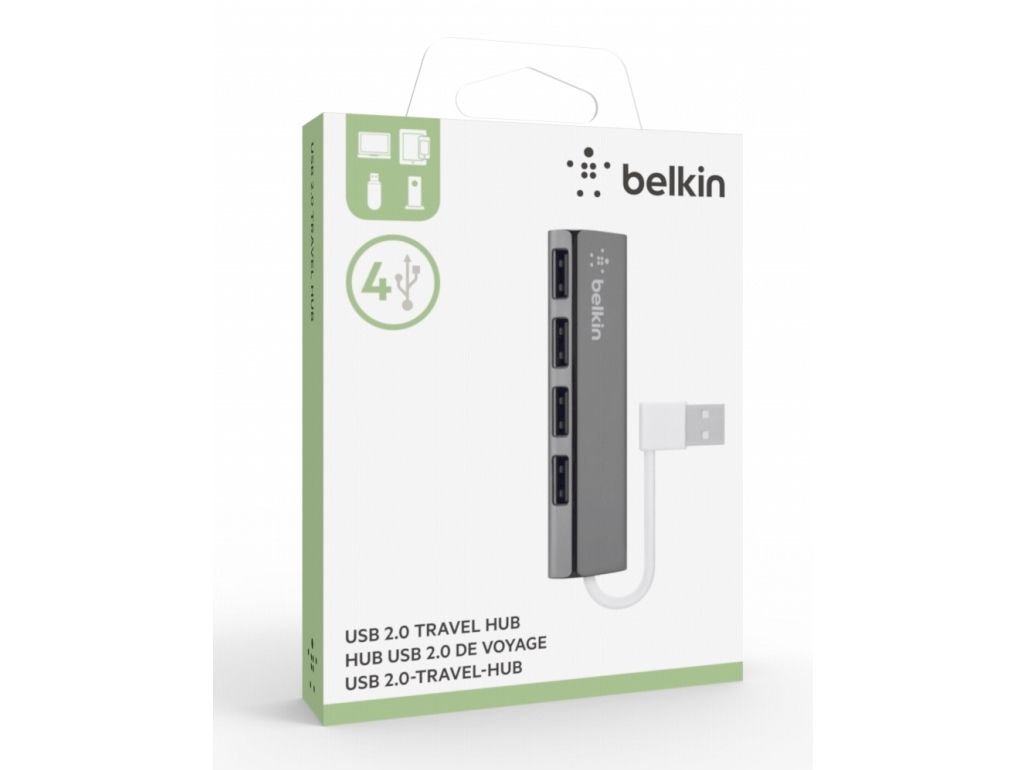 Belkin Ultra-Slim Travel - Hub - 4 x USB 2.0 - stasjonær