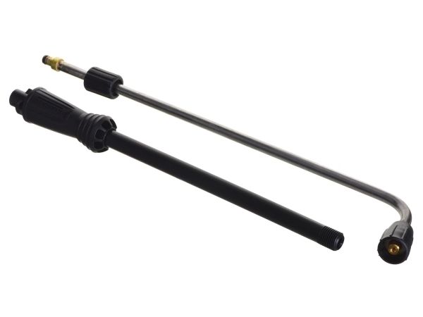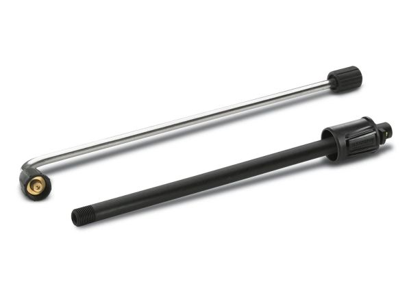 Extra-long angled spray lance (about 1 m) for easy cleaning of difficult to reach areas, e.g. roof gutters or vehicle underbodies.