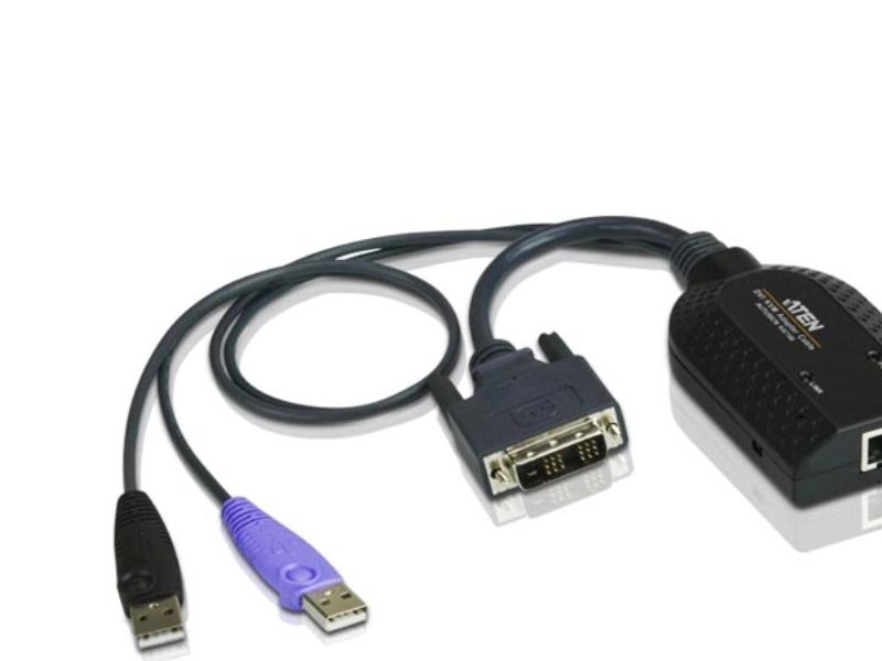 The KA7166 KVM adapter cable connects a KVM switch to the DVI-D video and USB ports of a target computer. The KA7166 supports DVI-D output and provides a USB plug to connect a target computer for Smart Card/CAC support. With its small size and light weight design, it represents the next generation of KVM adapter cables offering superior signal compensation and delay skew technologies for greatly enhanced video quality.