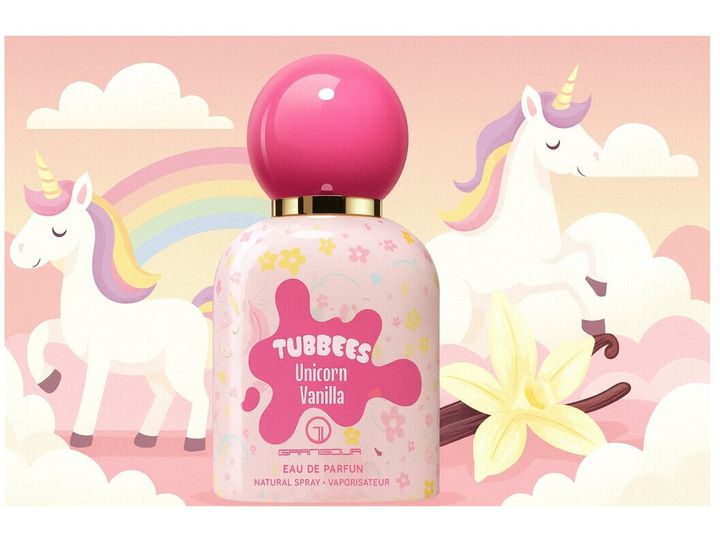 | Duftpyramide og noter Toppnoter: acai-bær, sitrus, solbær Midtnoter: matcha-te, rose, hvite blomster Basenoter: vanilje, sukkerspinn, sandeltre GRANDEUR Tubbees Unicorn Vanilla EDP 50 ml En magisk og søt duft med noter av acai-bær, blomster og kremaktig vanilje. En leken gourmand-parfyme som sprer glede og fantasi – som et duftende eventyr i en flaske. |