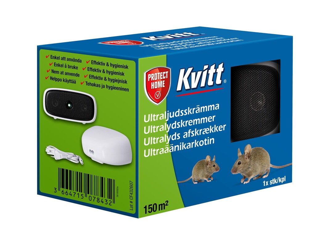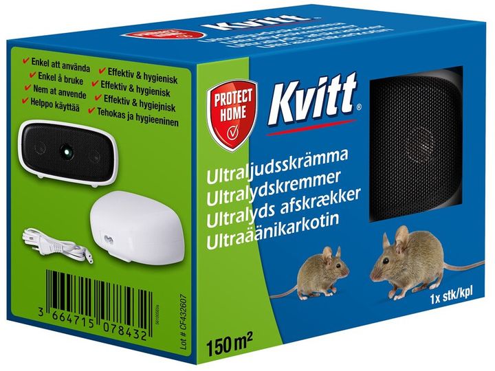 Kvitt® Ultralyds afskrækker til mus & rotter 150 m2