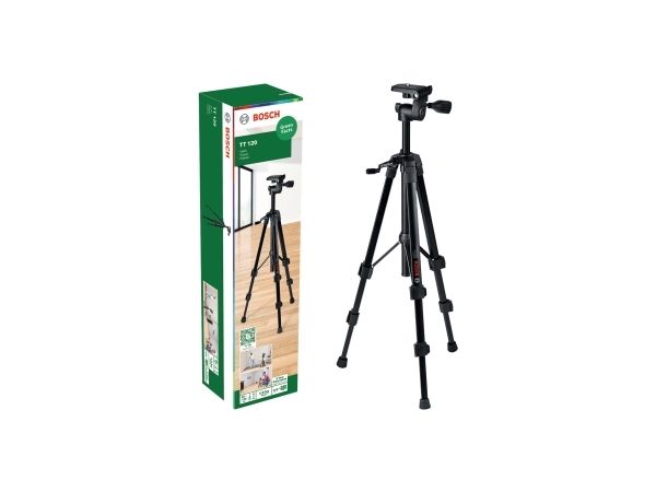 Stativ TT 120. Nem og præcis positionering af laserlinjen. Finhøjdeindstillingsområde på 0,45 - 1,20 m muliggør præcis arbejdshøjde. Integreret libeller sikrer perfekt til justering af nivelleringsapparater. Enkelt hældning og 360°-rotation af stativhovedet for ideel laserpositionering. Passer til alle nivelleringsapparater med 1/4 -gevind. Produkt med bæredygtighedskarakteristika, yderligere oplysninger se nedenfor