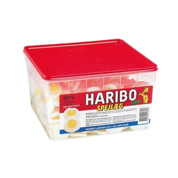 Haribo Spejlæg 1,6 kg i plastbøtte