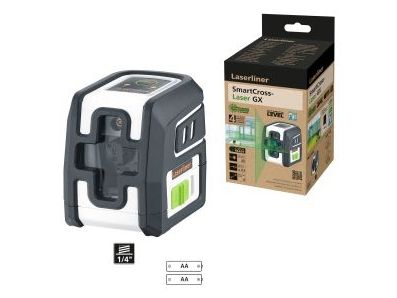 Krydslinje-laseren projicerer et klart grønt laserkryds til nøjagtig horisontal og vertikal justering af genstande. Den har desuden en manuel vippefunktion, som gør det nemt at lægge tab på grene og et 4 -gevind til montering på et stativ. Med den integrerede håndmodtagertilstand kan laseren også anvendes udendørs og ved tilpasningsarbejde på store afstande. Laserens kabinet består for en stor del af genbrugt plast og yder et værdifuldt bidrag til bæredygtighed.