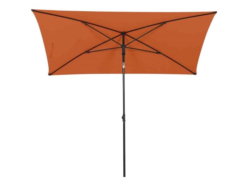 City mellemdækkerskærm antracit/terracotta 140x210cm Mellemdækkerskærm CITY, 210x140 cm, stel af stål, pulverbelagt i antracit, betræk af polyester 160 g/m2 i terracotta, 4 stivere af stål, nittede, åbne med skyder, understok rundt, 32 mm, beskyttelsesfaktor UPF 50+, 2-delt etage med justeringsskrue, knækbar, emballeret i bæretaske