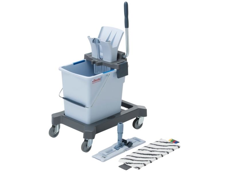 Ideelt til mindre enheder eller hvor der ikke er mulighed for vask. Startsættet indeholder 1 stk. MicroPlus mop og 1 stk. fremfører.
