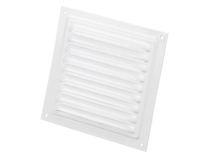 Jalousirist med insektnet. Monteres direkte på væg, sokkel eller gavl. Fastgøres med 1 skrue i hvert hjørne eller med fugemasse. Kan anvendes til alle former for ventilationsopgaver. Instektnettet forhindrer indtrængen af insekter. Anvendes risten i aftræk fra en tørretumbler, så anbefaler vi at fjerne insektnettet for at fnuller fra tumbleren ikke tilstopper risten. Fremstillet i aluminium.