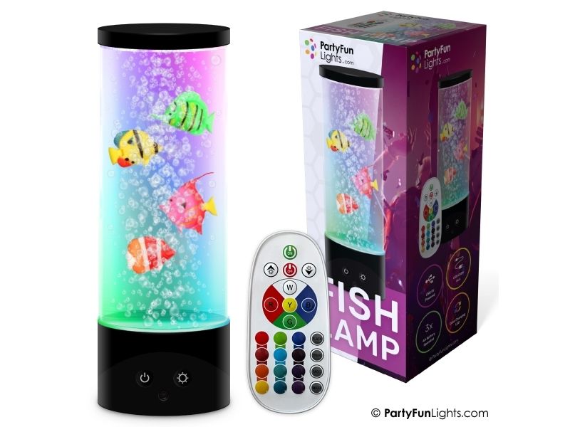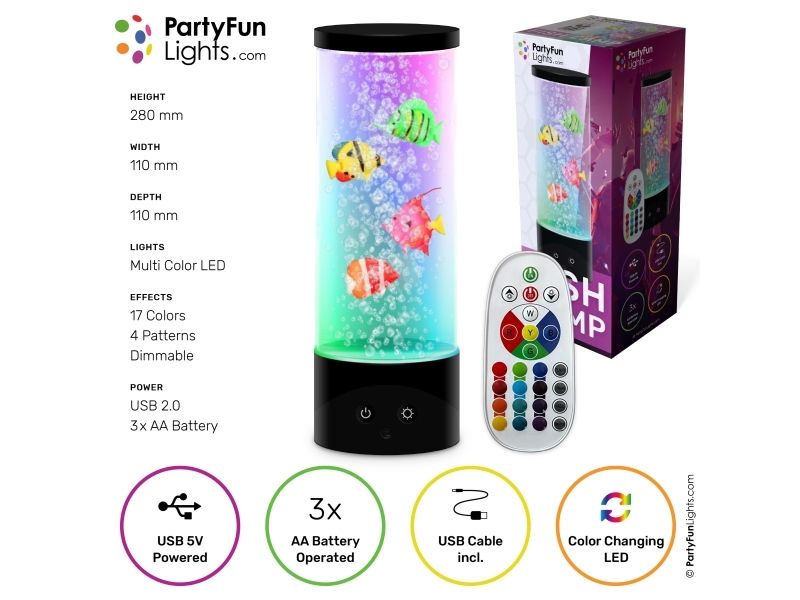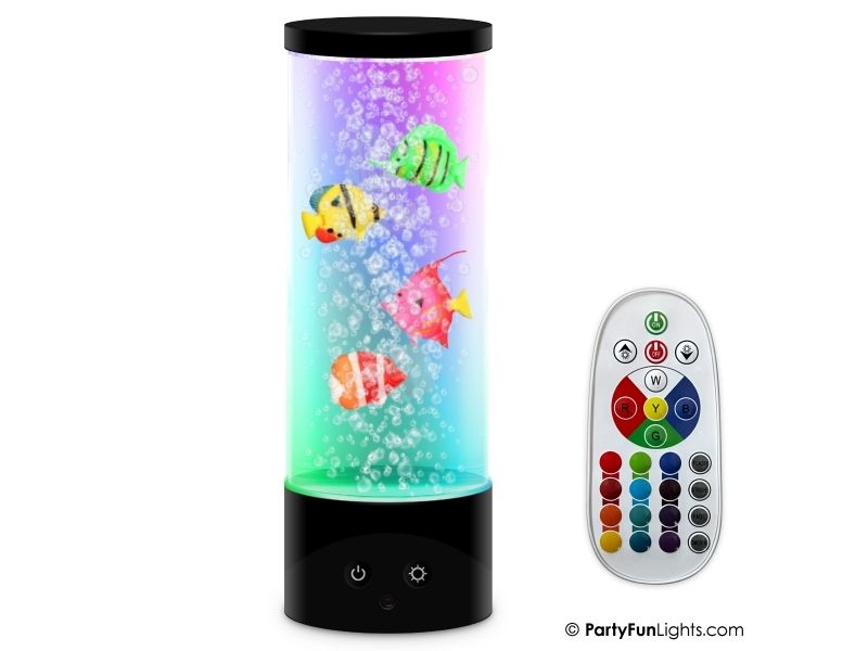 Bring undervandsverdenen til live i dit hjem. med denne fantastiske akvarielampe. fyldt med søde tropefisk. Lampen er fyldt med vand. og takket være en stille pumpe blæses der forsigtigt luftbobler gennem vandet. som får fiskene til at bevæge sig legende. som om de svømmede i virkeligheden!