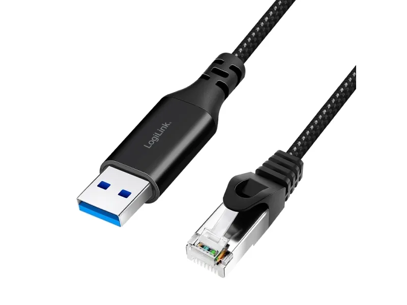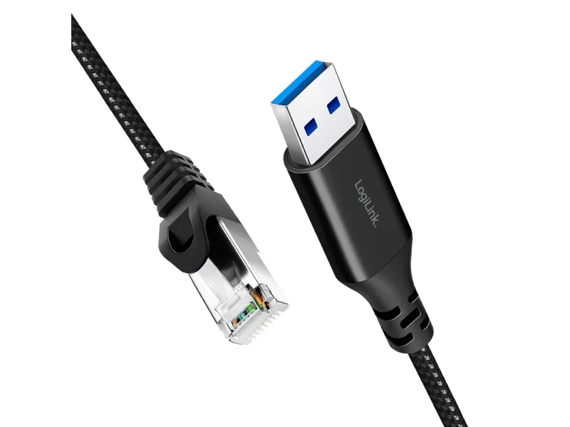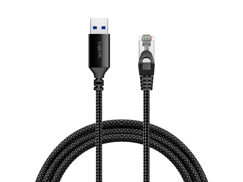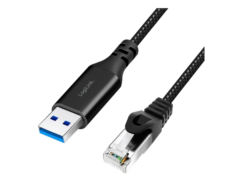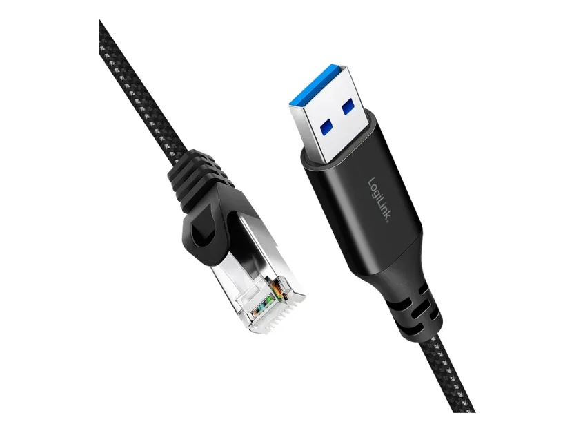 LogiLink USB 3.0 Ethernet-kabel, A/M til RJ45/M, 1 Gbit/s, aktiv, sort/grå, 2 m.