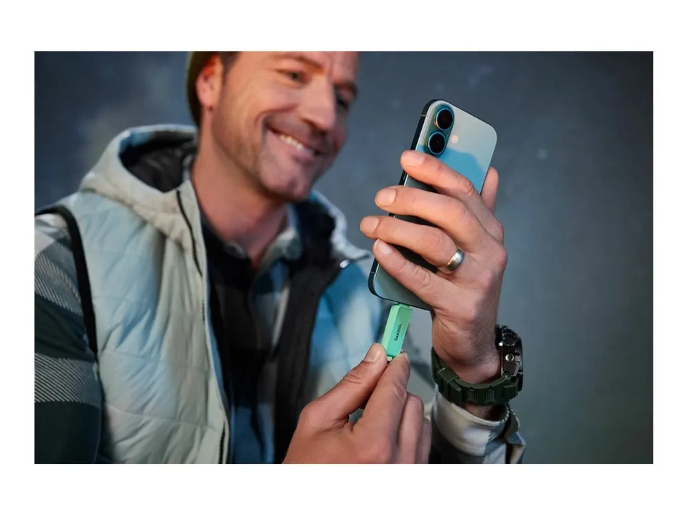 The SanDisk Phone Drive offers a convenient solution for portable data storage with its 256 GB capacity. Designed for versatility, this USB flash drive features a robust USB-C 3.2 Gen 1 interface that provides read speeds of up to 150 MB/s, making it easy to transfer files efficiently. The key ring loop adds practicality, allowing users to keep their drive close at hand while ensuring reliable performance in varying conditions with its operating temperature range of 0°C to 45°C.