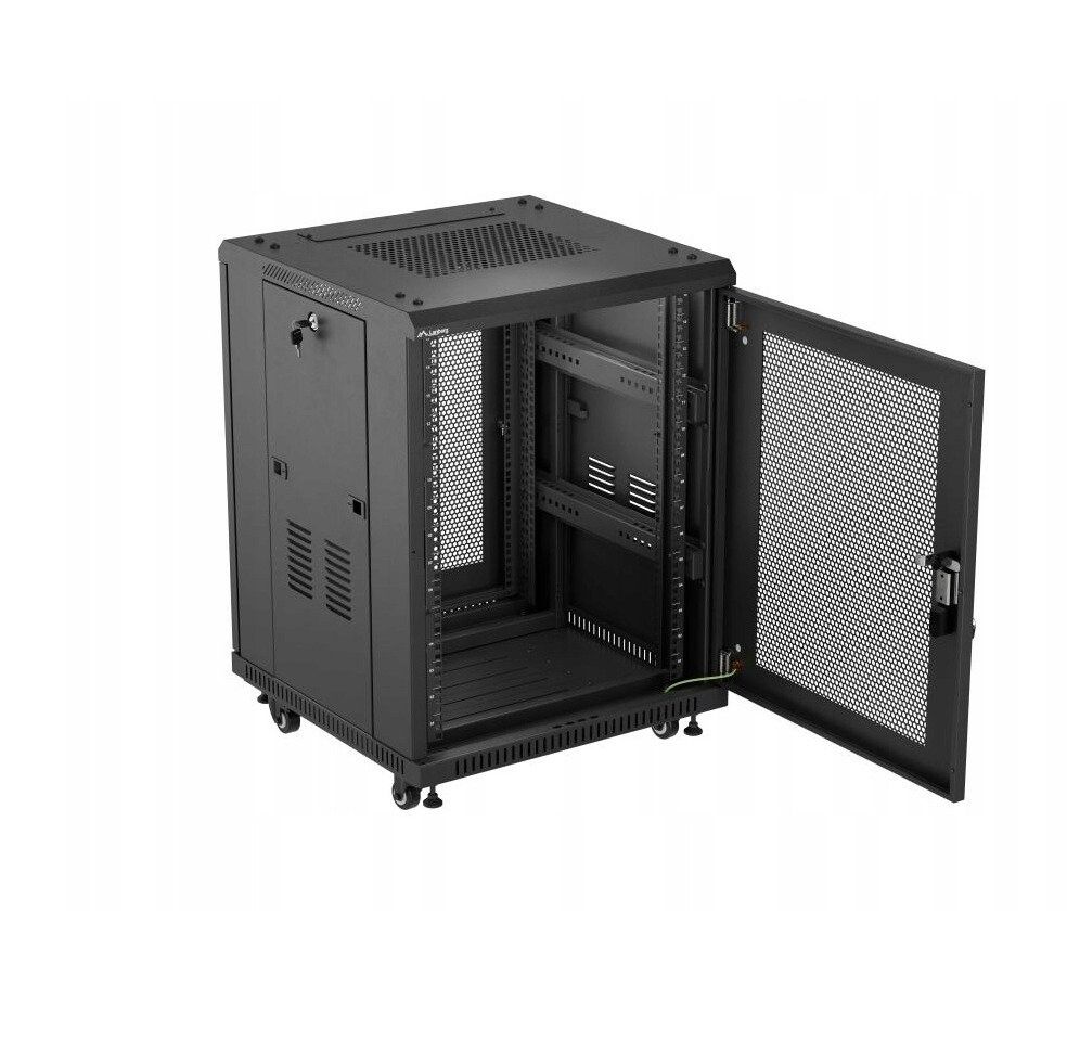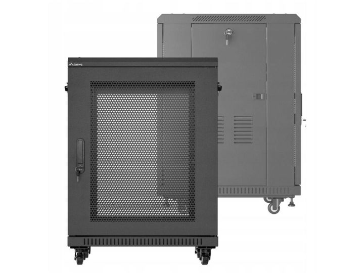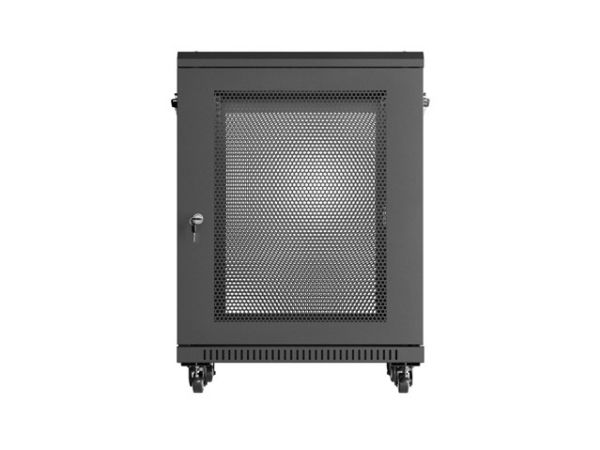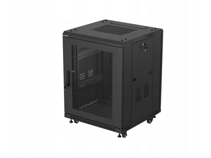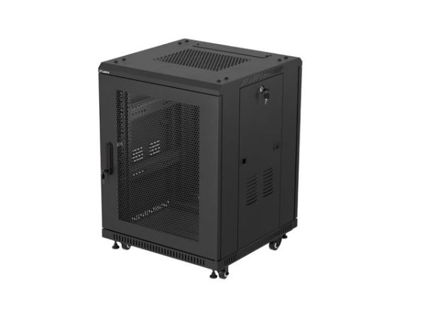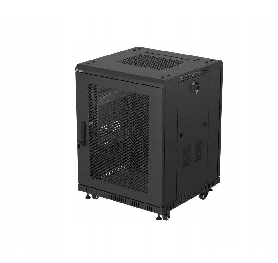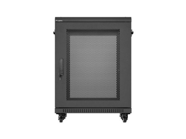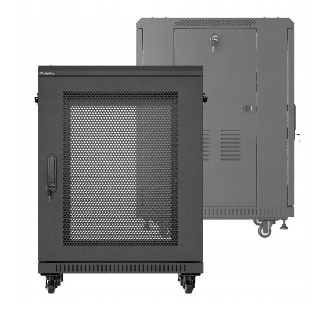 Lanberg FF01 series - Rack skap - 600 x 600, flat pack, with mesh door - med 2 kjølevifter - fritt stående - svart, RAL 9004 - 15U - 19"
