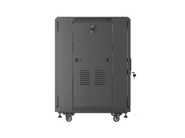 Constructed from durable materials, including 2 mm rail and 1.2 mm panel thicknesses, this cabinet rack can support a weight limit of up to 800 kg. Additional features, such as side locks, legs, and wheels with brakes, contribute to its stability and versatility as a freestanding unit. Compliant with standards such as ETSI and IP20, the Lanberg FF01 series rack is a practical choice for various system accessory applications.