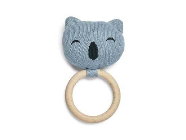 Vores Anton babyrangle er lavet i 100% økologisk bomuldsstrik med FSC-certificeret træring, der er let for babyen at gribe fat om. Bomuldsstrikken er blød og dejlig, og udformet som en koalabjørn.