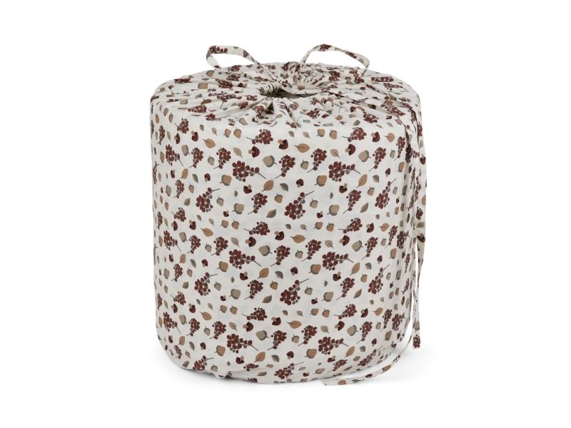 Sengeranden leveres i en økologisk bomuldspose i det samme design, som efterfølgende kan bruges til opbevaring af legetøj eller mange andre ting. OBS: Fjern skum inden vask.
