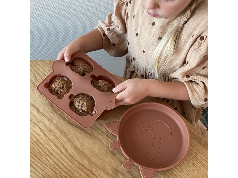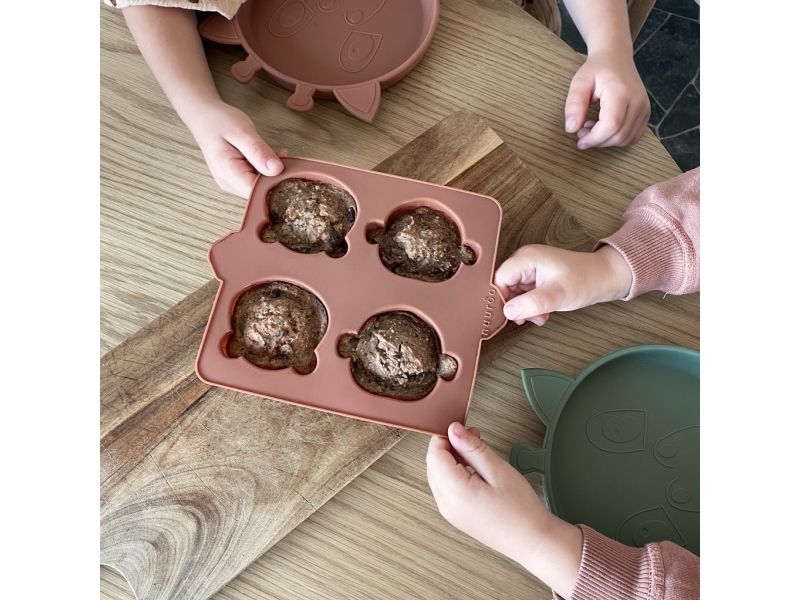 Tag børnene med i køkkenet og bag jeres yndlingsmuffins i vores dyreformet kageforme med motiver af aber og bjørne. Kageformene er lavet i LFGB silikone og tåler opvaskemaskine.