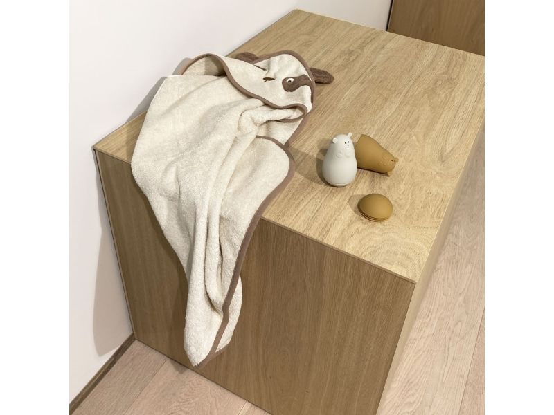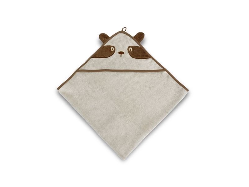 Det blødeste håndklæde med hætte i 100 % økologisk bomuldsfrotté, perfekt efter et varmt bad. Aki håndklæde har et broderet ansigt og ører på hætten.