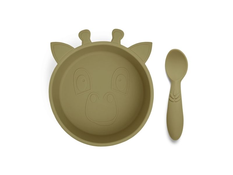 To af nuuroo's bedste serviceprodukter i LFGB silikone - samlet i et sæt. Dette set indeholder en dyb tallerken og en ske. Silikonen er uden nogen skadelige kemikalier, og er et godt alternativ til porcelænsservice da det ikke går i stykker hvis det bliver tabt på gulvet.