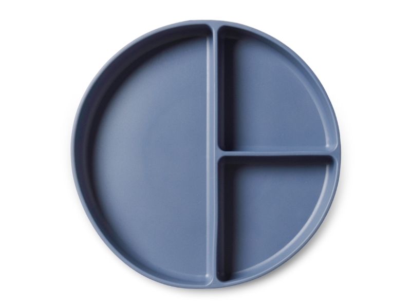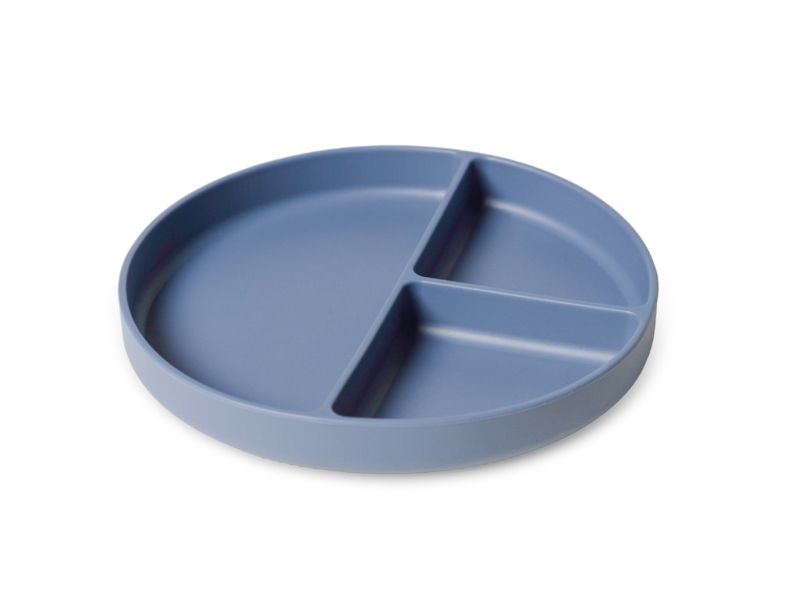 Ruminddelt silikone tallerken med sugekop. Denne tallerken er perfekt til de mindste. Rummene i tallerknen sikre at maden ikke bliver blandet sammen, og sugekoppen sikre at tallerknen ikke bliver smidt på gulvet.