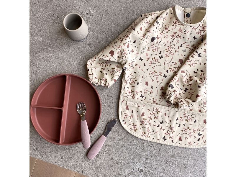 Ruminddelt silikone tallerken med sugekop. Denne tallerken er perfekt til de mindste. Rummene i tallerknen sikre at maden ikke bliver blandet sammen, og sugekoppen sikre at tallerknen ikke bliver smidt på gulvet.