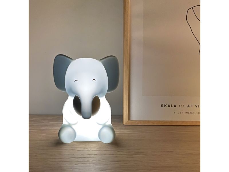 Natlampen er med til at skabe hygge og tryghed for dit barn når mørket falder på. Lampen er formet som en elefant og vil hurtigt blive børnenes bedste lys-ven. Den er lavet i 100% fleksibel silikone, CE mærket og bliver opladt via USB-stik.
