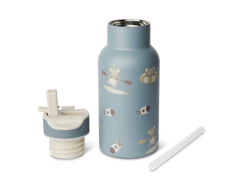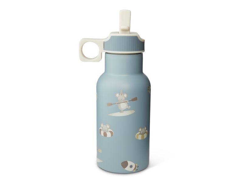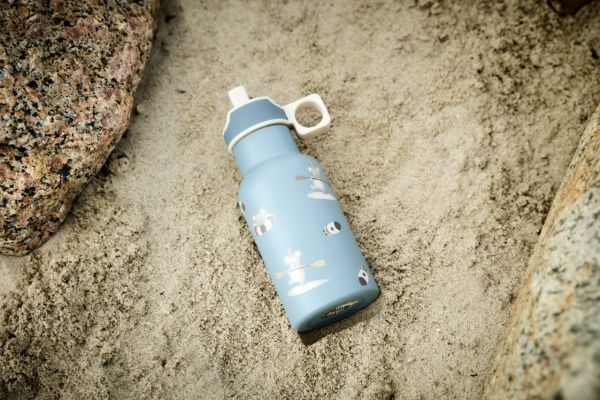 Rustfri vandflaske i stål, lavet med smart låg. Låget har et lille håndtag som gør flasken nem at holde ved. Kan holde væsker kold i op til 24 timer.