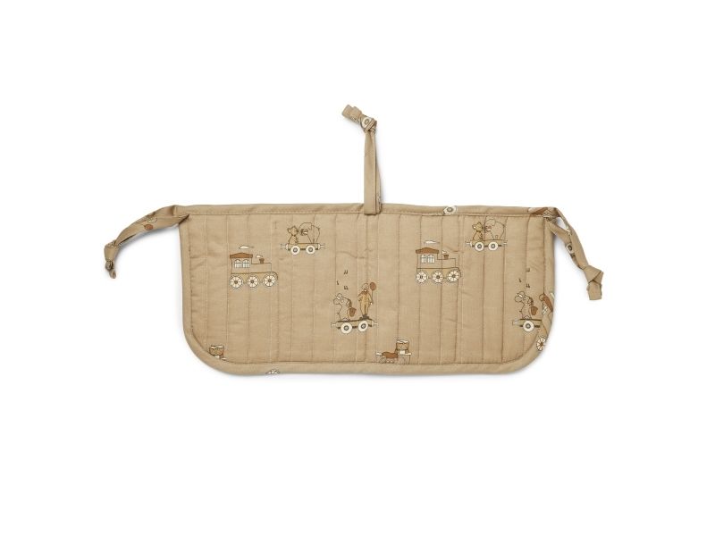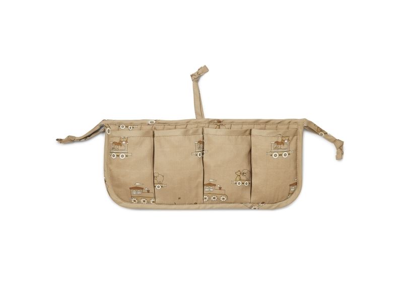 Praktisk sengelomme til at hænge på tremmesengen eller ved puslebordet. Sengelommen har fire rum til at ligge sutter, nusseklude og andre sengetidsnødvendigheder, så de altid er tæt på ved sengetid. Sengelommen bindes nemt på sengekanten med tre snørrer.