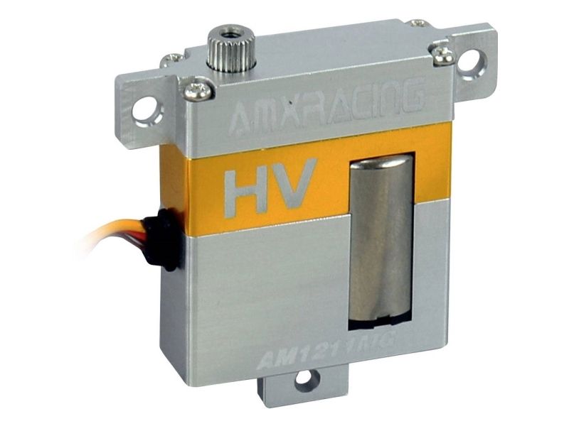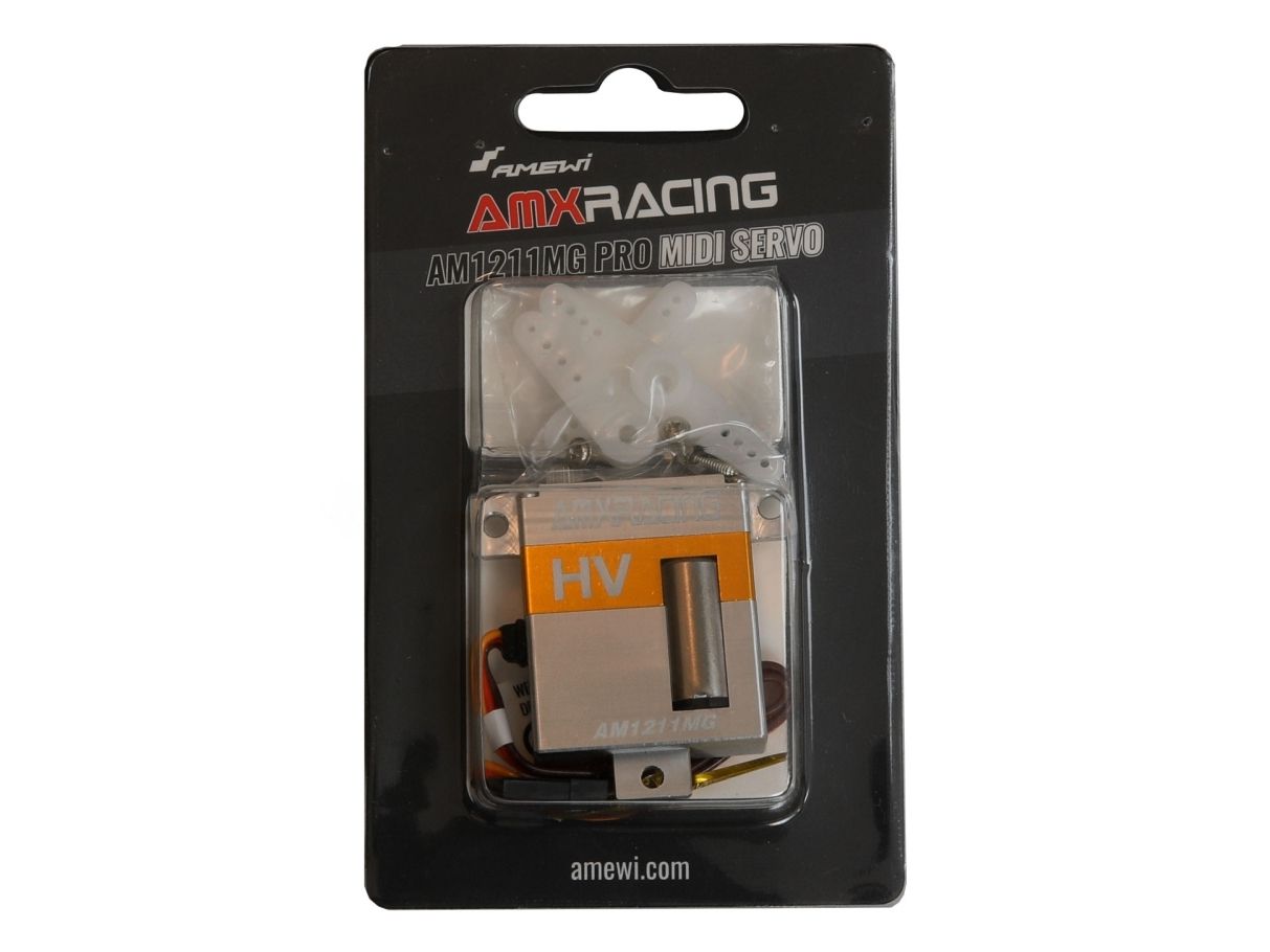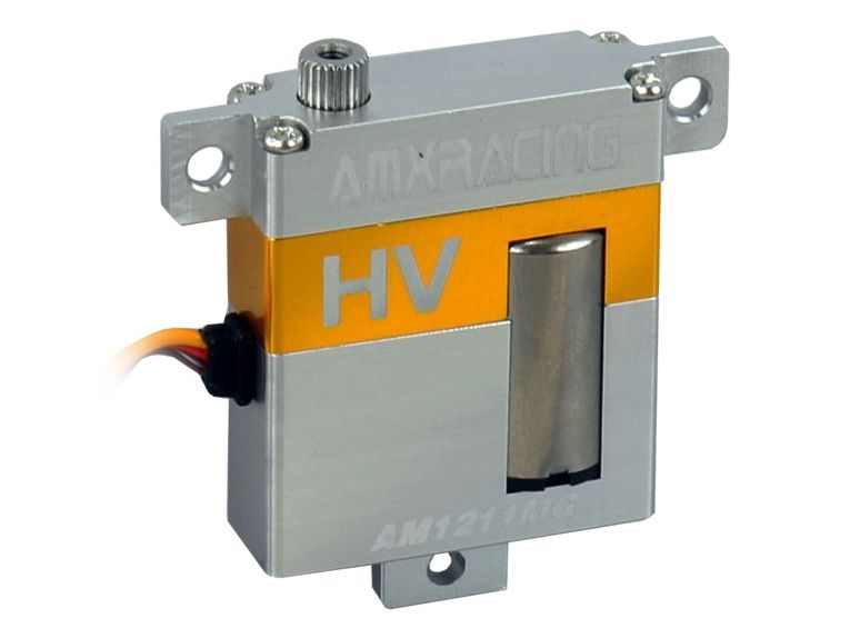AMXRacing AM1211mg PRO MIDI servo Ultrafladt og kraftig HV fladeservo med metaldrev - specielt udviklet til liggende indbygning i tynde flader som for eksempel på svæveflymodeller. Også egnet til alle andre RC-modeller, som kræver denne størrelse.