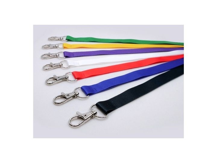 Nøglesnorene har en sikkerhedslås og en roterende karabinhage til fastgørelse af ID-kort eller navneskilteholdere.
